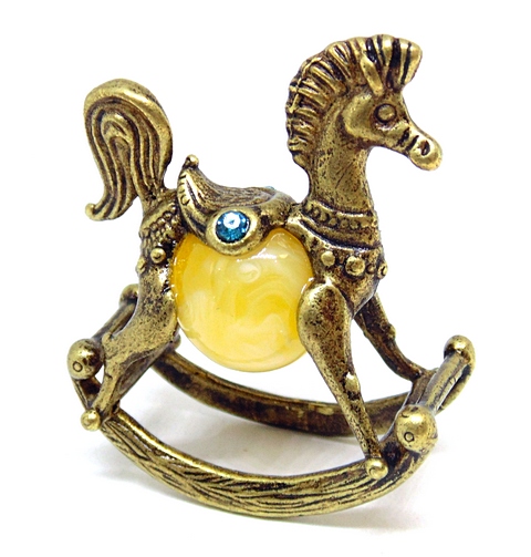 —Фигурка из латуни с янтарем Лошадка качалка (белая) арт. 413-1