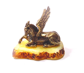 —Фигурка из латуни с янтарем Пегас (белая подставка) арт. 1031-1
