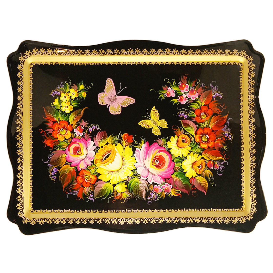 Тагильский поднос "С бабочкой" 40х30 см. арт. 87687853 жостовская роспись купить в интернет-магазине русских сувениров NashiPodarki из Москвы
